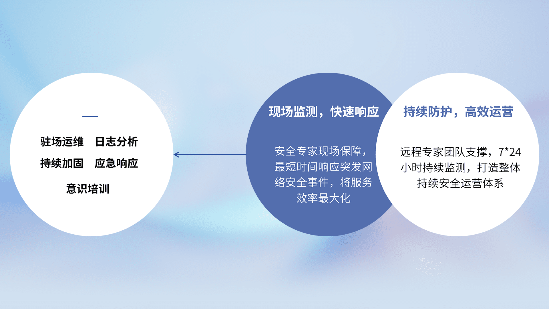 针对客户行业特性,,提供专属的一站式安全管理服务,,帮助客户全面感知网络空间威胁,,,通过安全专家的线上、、、线下防护支持,,,,实现风险闭环,,,将安全保障常态化,,为客户打造常态化安全运维运营服务。。。